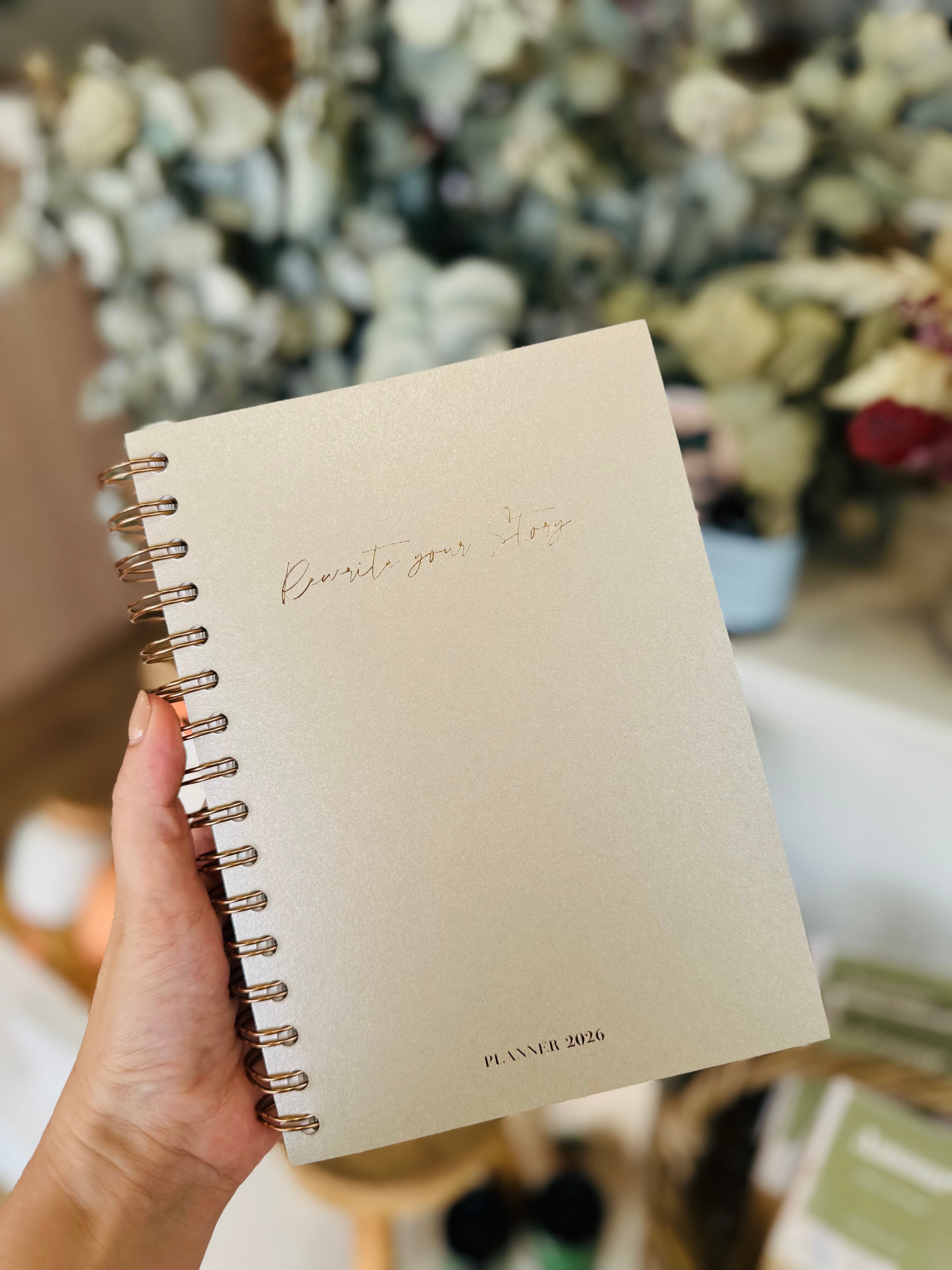 Le planner de Rewrite Your Story®, c'est un peu ton coach idéal : Toujours avec toi, il te permet de t'organiser efficacement avec sa partie “agenda classique”, tout en intégrant des pages de réflexions personnelles sur toi, tes aspirations, tes rêves et tes objectifs ; et des outils de développement personnel mensuels.